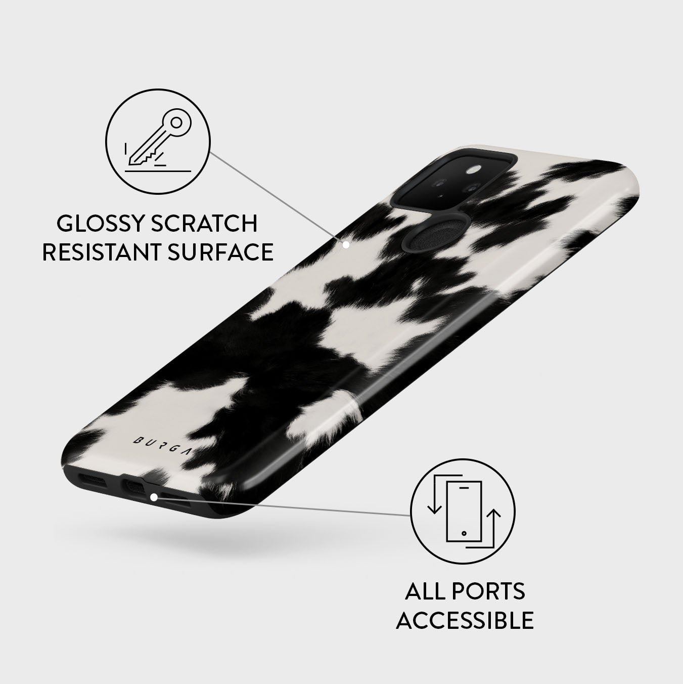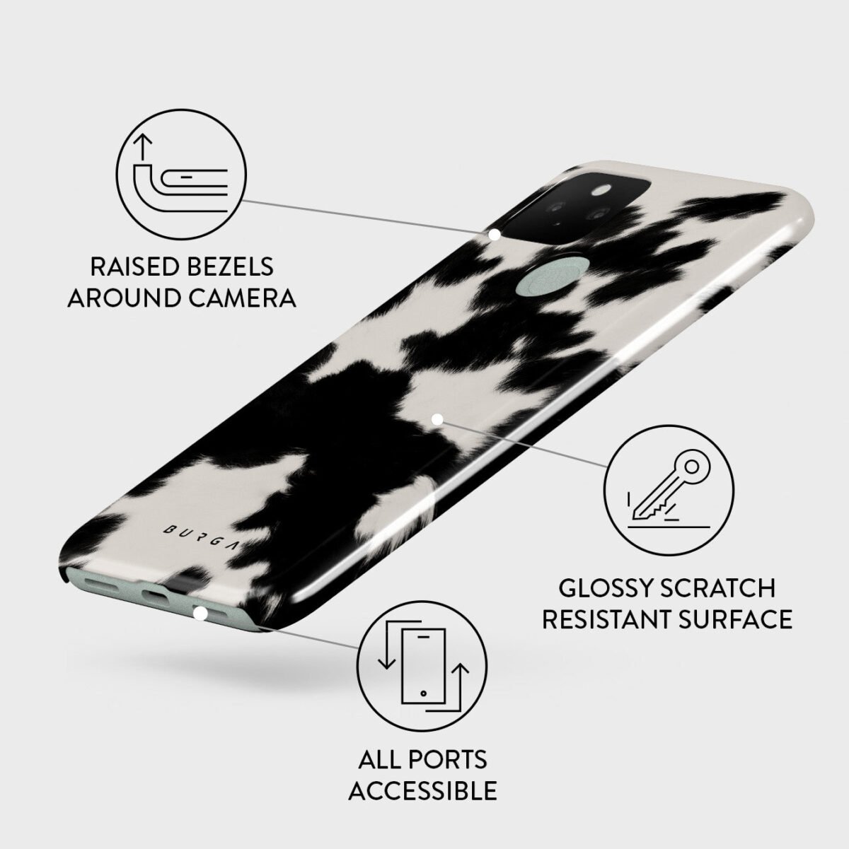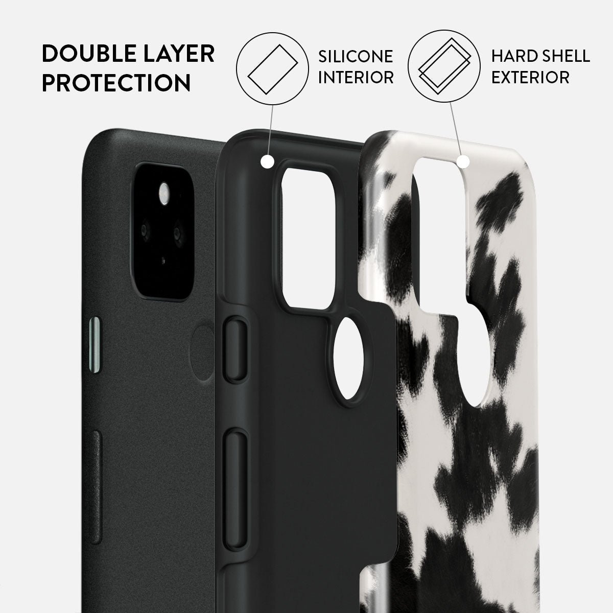 Your phone deserves to look cute and stay protected at all times. and our Achromatic Google Pixel 5 phone case will help you keep it safe and sound. The cow print in black and white is both daring and classic. making it the perfect addition to your accessory collection.