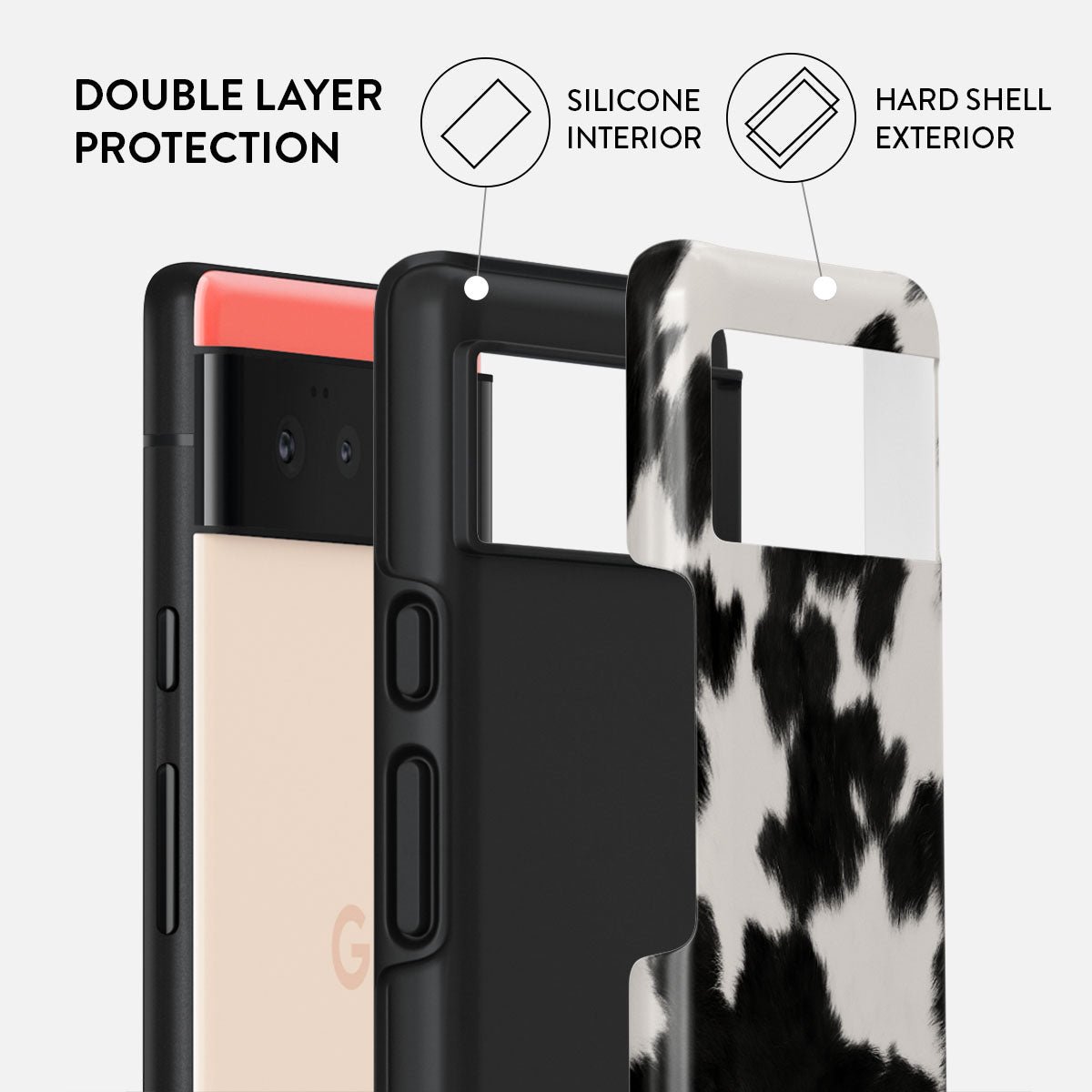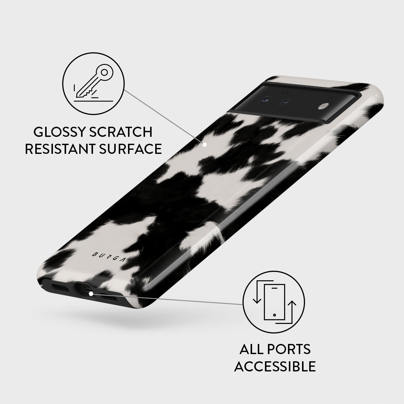 Your phone deserves to look cute and stay protected at all times. and our Achromatic Google Pixel 6 phone case will help you keep it safe and sound. The cow print in black and white is both daring and classic. making it the perfect addition to your accessory collection.