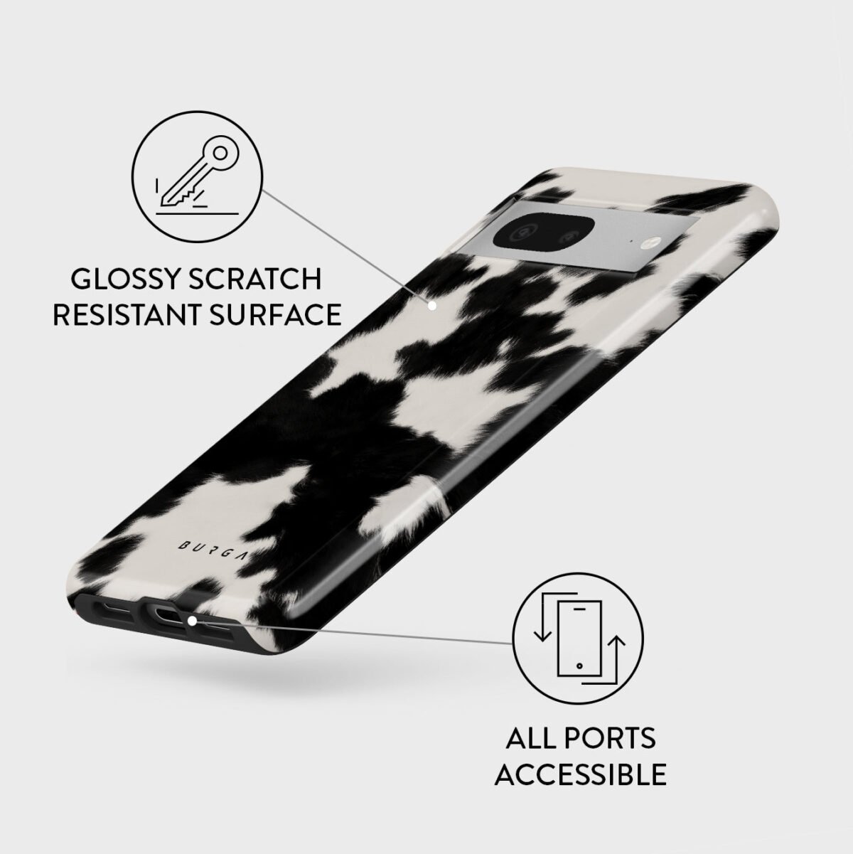 Your phone deserves to look cute and stay protected at all times. and our Achromatic Google Pixel 7 phone case will help you keep it safe and sound. The cow print in black and white is both daring and classic. making it the perfect addition to your accessory collection.