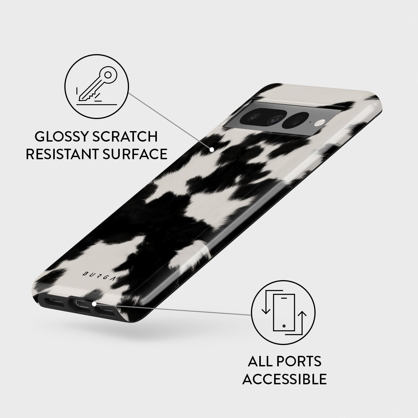 Your phone deserves to look cute and stay protected at all times. and our Achromatic Google Pixel 7 Pro phone case will help you keep it safe and sound. The cow print in black and white is both daring and classic. making it the perfect addition to your accessory collection.
