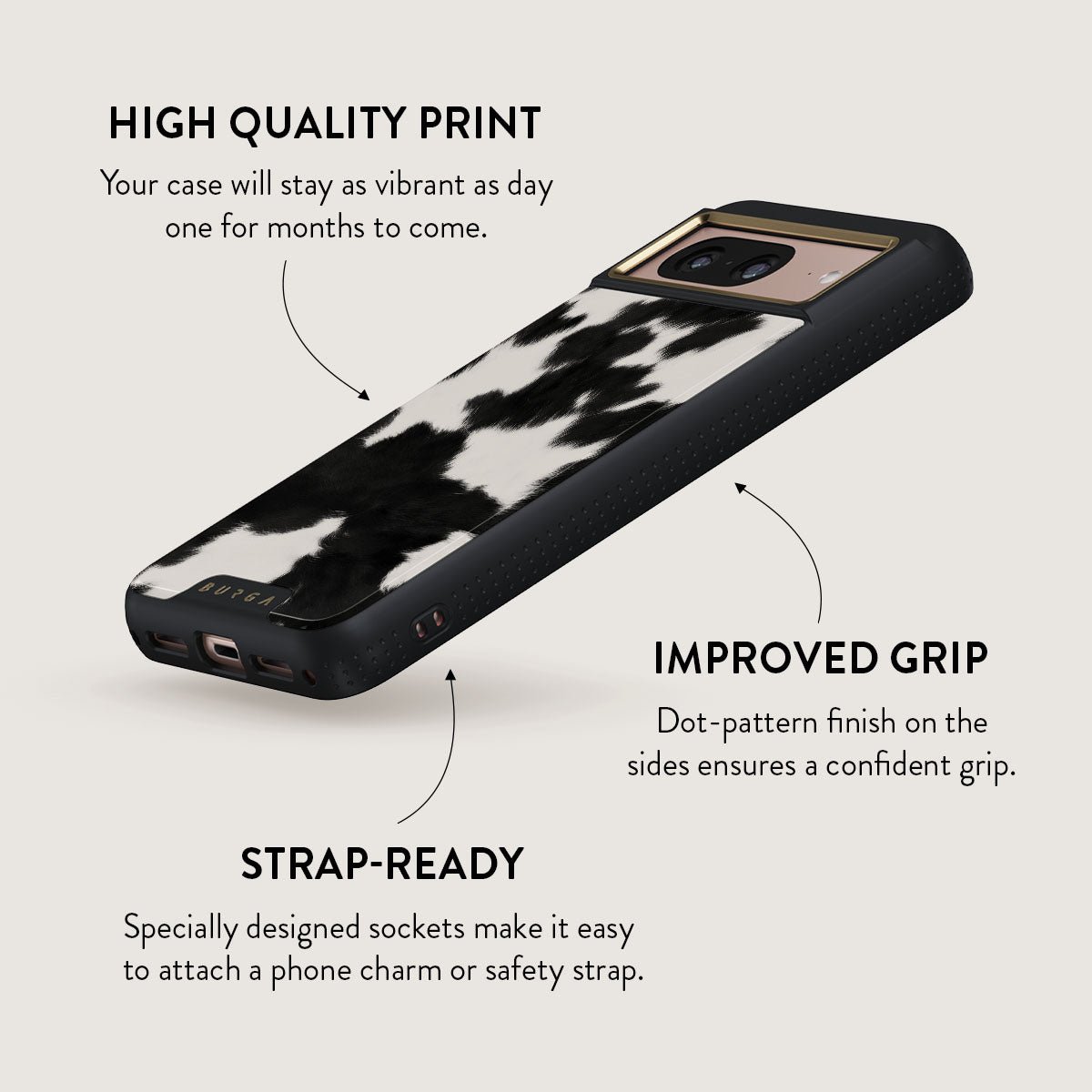Your phone deserves to look cute and stay protected at all times. and our Achromatic Google Pixel 8 phone case will help you keep it safe and sound. The cow print in black and white is both daring and classic. making it the perfect addition to your accessory collection.