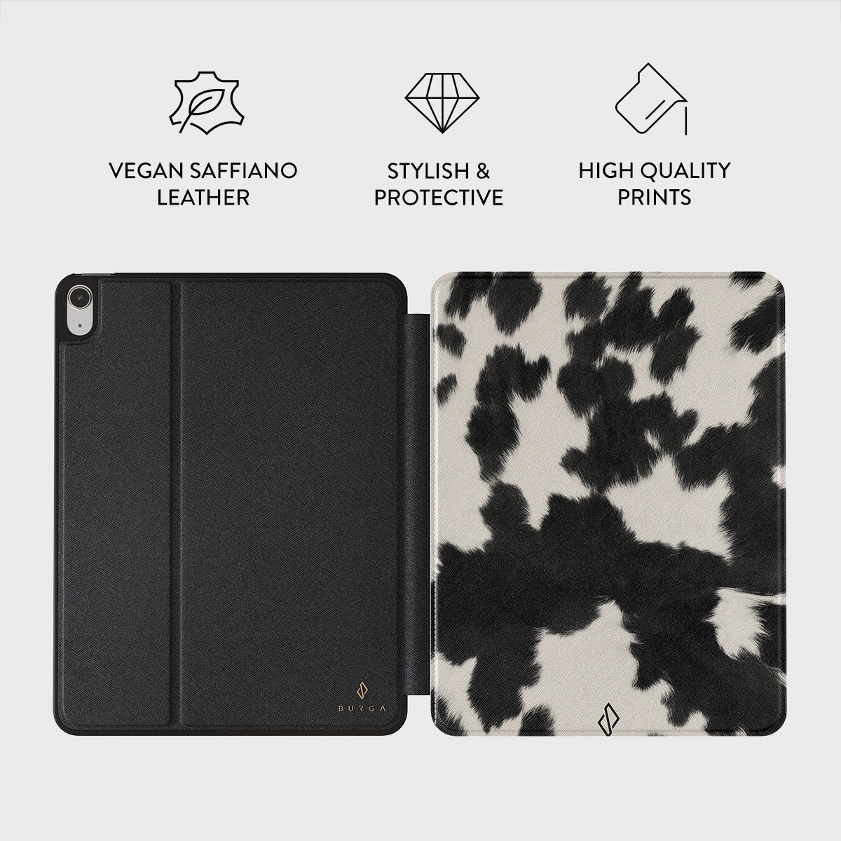* The case is not textured-it is a printed pattern *Your iPad deserves to look cute and stay protected at all times. and our Achromatic iPad Air 11 (6th Gen) folio case will help you keep it safe and sound. The cow print in black and white is both daring and classic. making it the perfect addition to your accessory collection.