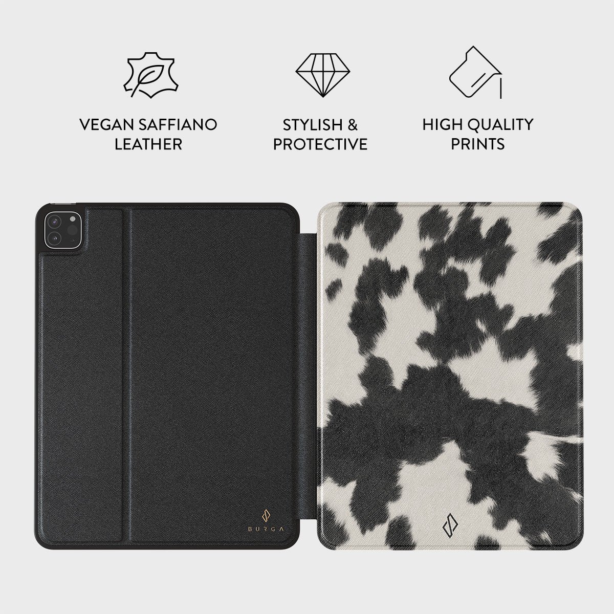 * The case is not textured-it is a printed pattern *Your iPad deserves to look cute and stay protected at all times. and our Achromatic iPad Pro 12.9 (4th/3rd Gen) folio case will help you keep it safe and sound. The cow print in black and white is both daring and classic. making it the perfect addition to your accessory collection.