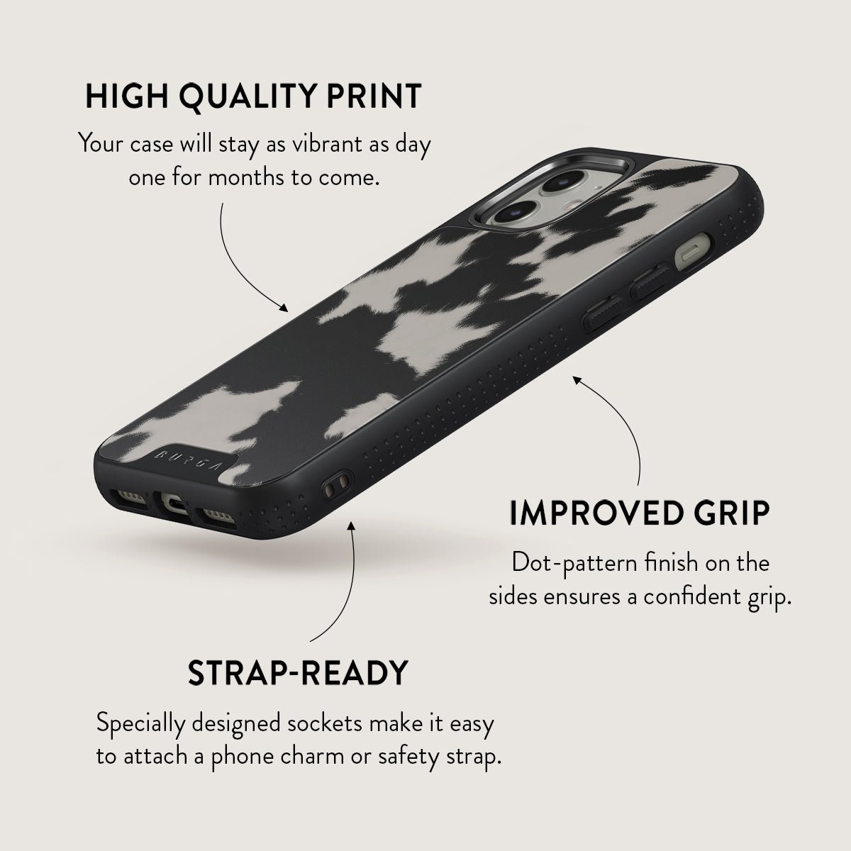 Your phone deserves to look cute and stay protected at all times. and our Achromatic iPhone 11 phone case will help you keep it safe and sound. The cow print in black and white is both daring and classic. making it the perfect addition to your accessory collection.