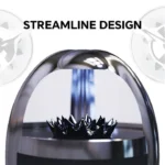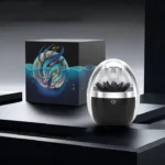 The ferrofluid is elegantly housed in a dome-shaped, fully transparent container, offering a pristine and unobstructed view of the liquid choreography. This unique design ensures a visual experience that can be fully appreciated from any angle.